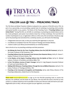 The Pastors and Leadership Conference (PALCON) is scheduled to take place at Trevecca from June 11-13 this summer. Registration is now open at palcon.org, with a registration fee of $209. Thanks to a grant, we have secured 10 spots for bi-vocational pastors at a reduced rate of $100. If you are a bi-vocational pastor and would like to register, please complete the following steps: